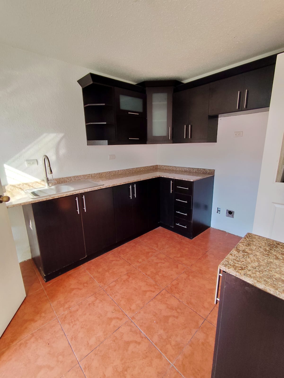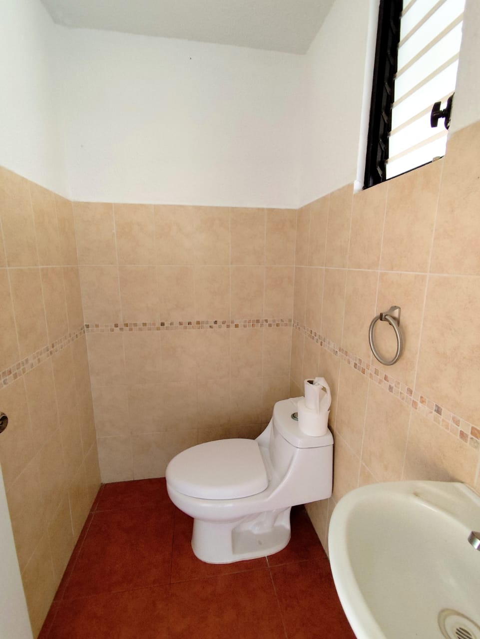 Primer Nivel: Estacionamiento para 2 vehículos (1 techado) 1/2 baño de visitas, sala – comedor – cocina, lavandería, pila y patio trasero.